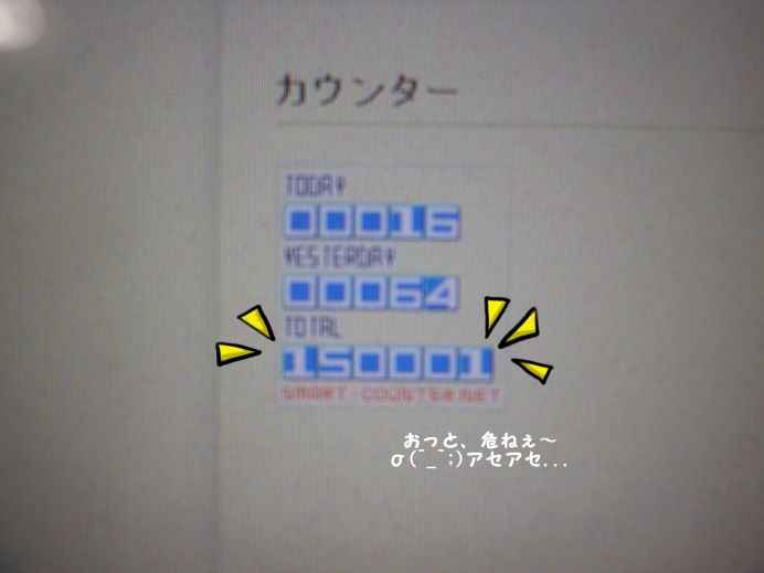 (もし、キリ番getして写真撮ってるかたはメールください)