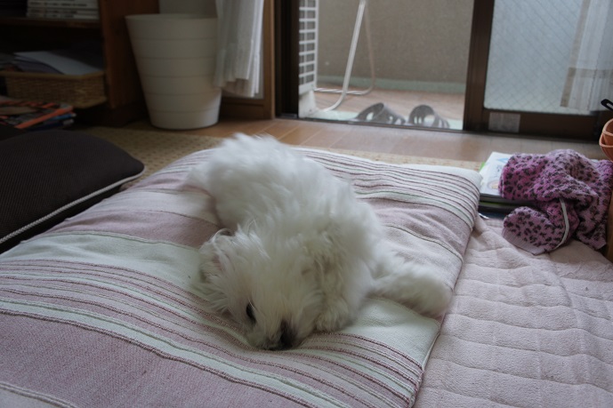 昼寝が好きなマルチーズ