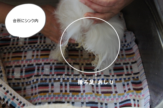 台所のシンク内にてシャンプー開始です~