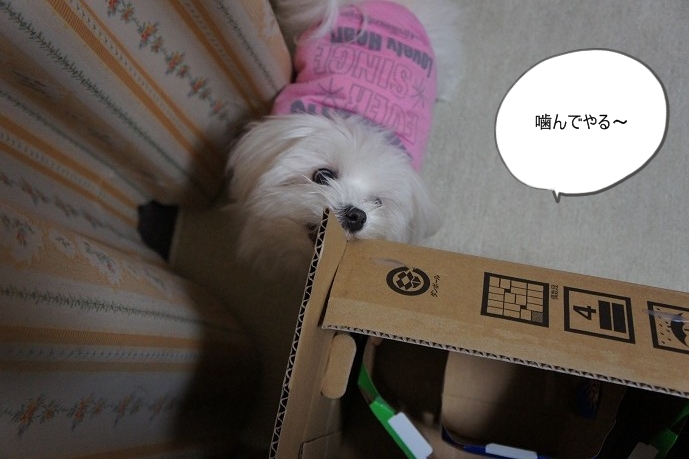 この日は置いてあるダンボールと格闘してます!!