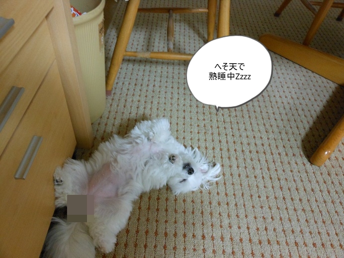 ただいまへそ天で熟睡中ですZzzz