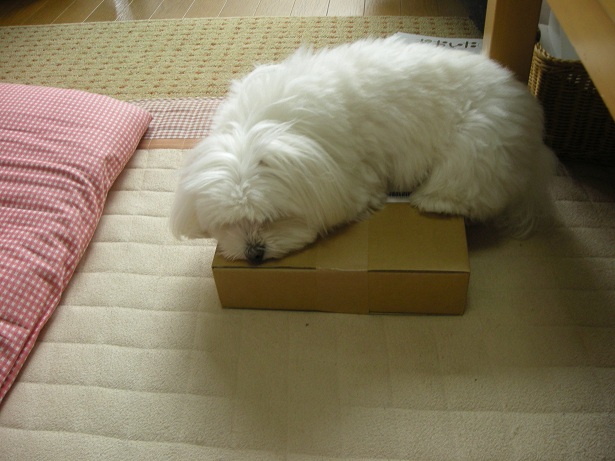 先日届いた荷物の上に乗っちゃいました