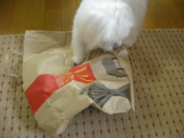 紙袋を噛む噛む・・・噛みます
