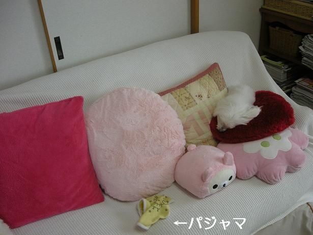赤いクッションの上でした