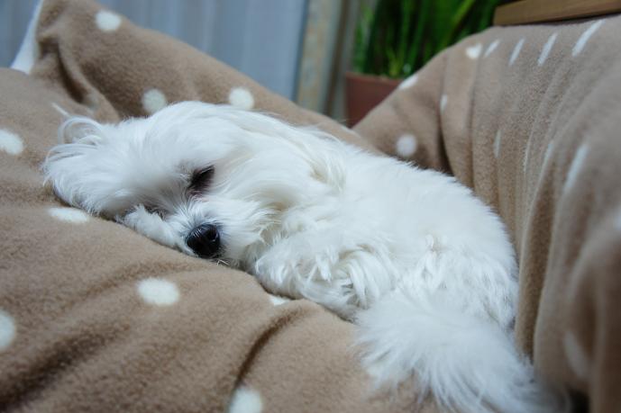 昼寝が好きなマルチーズ