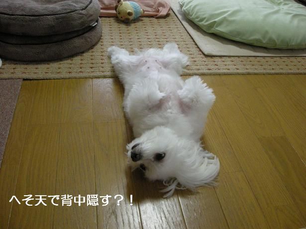 へそ天で背中隠してます
