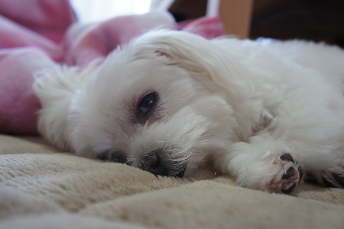 昼寝が好きなマルチーズ