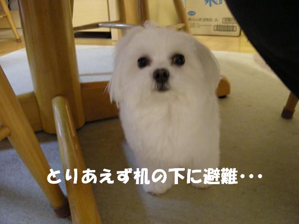 そして最終的に机の下に避難(-o-;